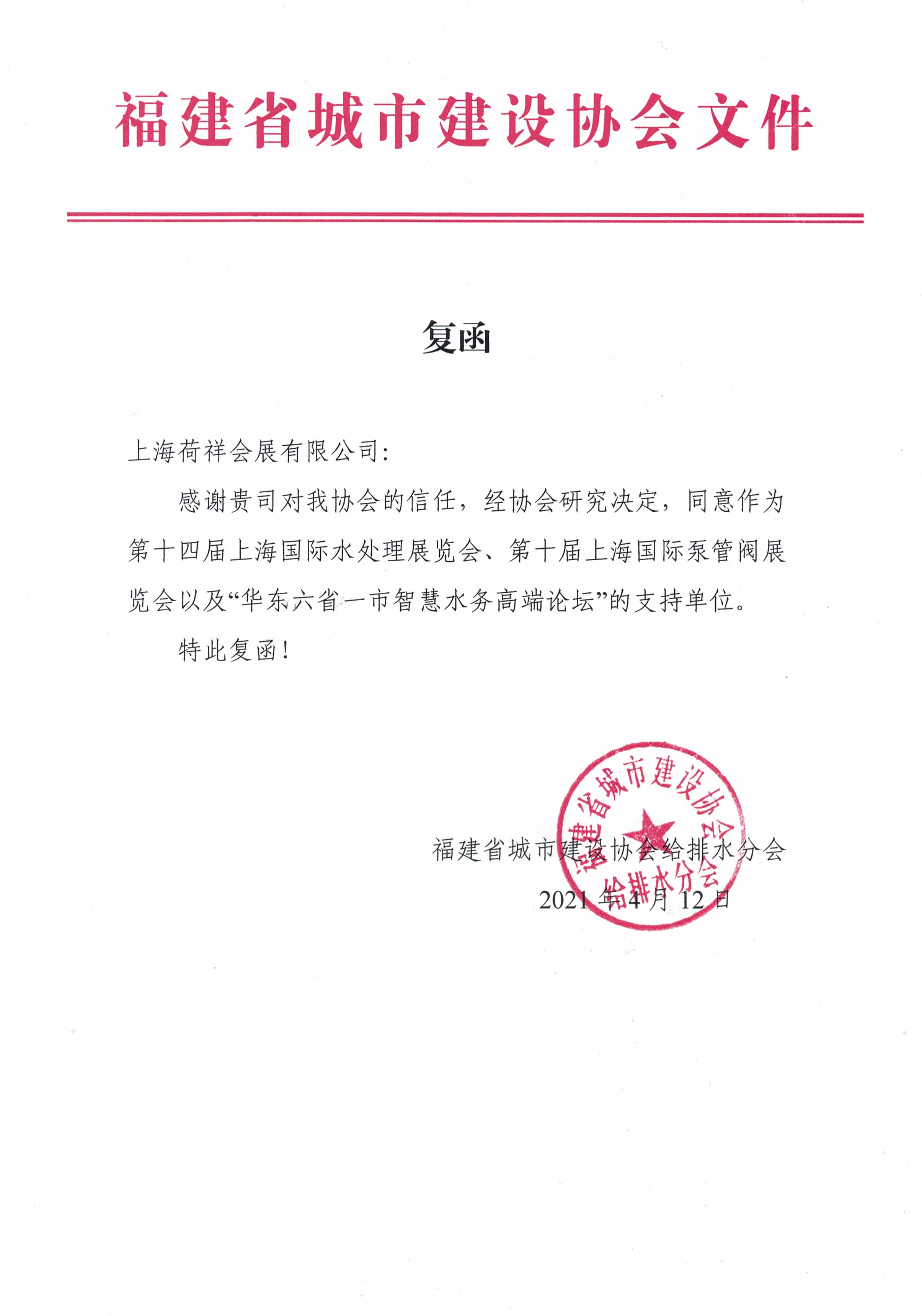 為幫助福建省水務(wù)企業(yè)進一步開拓市場,促進國內(nèi)外企業(yè)之間的經(jīng)貿(mào)合作與技術(shù)交流,福建省城市建設(shè)協(xié)會給排水分會決定將全力支持 2021 年 6 月 2 日在上海國家會展中心(虹橋)舉辦的2021華東六省一市智慧水務(wù)高端論壇,與主辦方上海荷瑞展覽有限公司攜手為城鎮(zhèn)水務(wù)行業(yè)搭建一個國際性商貿(mào)交流平臺,助力企業(yè)更好的抓住行業(yè)機遇,積極促進我國城鎮(zhèn)水務(wù)行業(yè)在"十四五"期間獲得快速發(fā)展。