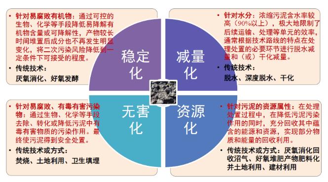 污泥處理處置原則:“安全環保、循環利用、節能降耗、因地制宜、穩妥可靠”,最終實現減量化、穩定化、無害化、資源化。