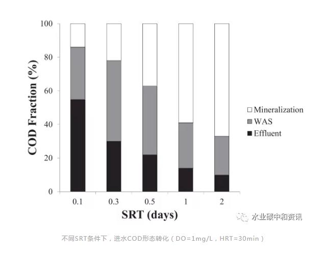 高負荷活性污泥法(high-rate activatedsludge, hras)(如a/b工藝中的a段)經常用于從污水中高效分離有機物,繼而將之用于能源再生。一座hras試驗裝置運行于寒冷溫度下。通過最大化提高污泥量、細菌量和生物絮凝作用,可以以最少能量輸入將進水中顆粒、膠體和溶解性cod集于廢物固體流中(jimenez et al.)。結果表明,srt、hrt和do等重要的設計參數對去除cod影響不大。因此,控制并最大程度地去除膠體和顆粒cod,盡量減慢生物降解cod的礦化和水解作用,是碳重新定向之關鍵。在較srt和hrt下運行時,產量接近其最大值,因而可在接近最大污泥產率情況下,可最優地利用cod產出生物質。在這些運行條件下,與傳統hras工藝相比,其去除大部分(50~80%)進水cod時所需求的曝氣量減少近60%。