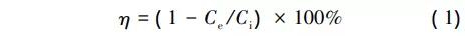 式中:η為納濾系統(tǒng)或子系統(tǒng)的截留率;ce為納濾系統(tǒng)或子系統(tǒng)的產(chǎn)水有機物或離子濃度,mg/l;ci為納濾系統(tǒng)或子系統(tǒng)的進水有機物或離子濃度,mg/l。