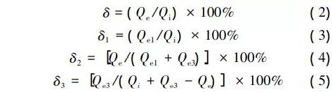 式中:δ、δ1、δ2、δ3分別為納濾系統(tǒng)和納濾1、2、3子系統(tǒng)的水回收率;qi為納濾系統(tǒng)(也是納濾1子系統(tǒng))的進水流量,m3/h;qe為納濾系統(tǒng)(也是納濾2子系統(tǒng))的產(chǎn)水流量,m3/h;qe1為納濾1子系統(tǒng)的產(chǎn)水流量,m3/h;qe3為納濾3子系統(tǒng)的產(chǎn)水流量,m3/h。聯(lián)立式(2)—(5)求解,可以得出: