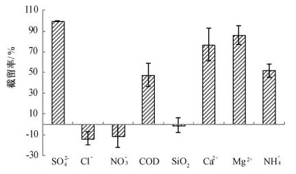 在高分離納濾系統(tǒng)中各納濾子系統(tǒng)的so2-4、cl-、no-3和cod平均截留率如圖3所示。