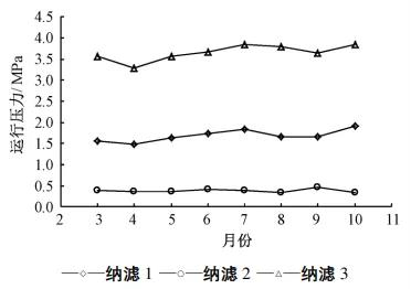 各納濾子系統(tǒng)在長期運行過程中的運行壓力變化如圖6所示。