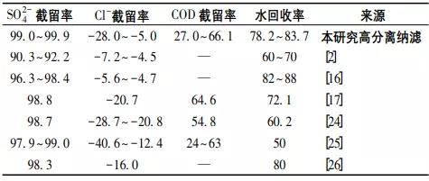 5)經(jīng)過9個月的連續(xù)監(jiān)測發(fā)現(xiàn),該納濾系統(tǒng)具有so2-4截留率較高、cl-負截留效果好、ca2+和mg2+截留率高、水回收率高、運行穩(wěn)定、抗污染性能較好、可高效截留大分子有機物等顯著優(yōu)勢,具有很好的應(yīng)用前景。