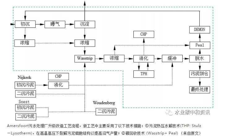 2015年建成12個(gè)能源工廠。在此方面,荷蘭已經(jīng)取得一些積極成果,一些污水處理廠利用污泥厭氧消化產(chǎn)ch4,ch4熱電聯(lián)產(chǎn)(chp)發(fā)電/產(chǎn)熱反哺污水處理廠運(yùn)行或供應(yīng)社會(huì)。dokhaven 污水處理廠主流工藝采用ab法,a、b兩段剩余污泥以不同脫水方式脫水再進(jìn)入后續(xù)消化池厭氧消化產(chǎn)ch4,并用于chp發(fā)電和產(chǎn)熱:電用于污水處理廠運(yùn)行,余熱用于消化系統(tǒng)加熱和冬季辦公室取暖等。apeldoorn污水處理廠引入?yún)捬豕蚕夹g(shù)同步處理剩余污泥和廚余垃圾,同時(shí)對(duì)污泥厭氧消化液采用側(cè)流自養(yǎng)脫氮(demon)工藝處理,以減少碳源消耗,增加更多剩余污泥量供厭氧消化轉(zhuǎn)化沼氣后用于chp發(fā)電。garmerwolde污水處理廠采用ab法中的a段將cod作為污泥(生物吸附)分離,并利用2個(gè)連續(xù)厭氧消化池處理這些污泥以及臨近的污水處理廠的剩余污泥。消化污泥脫水上清液采用節(jié)能型中溫亞硝化sharon工藝處理,沼氣chp發(fā)電可以滿足60%~70%的運(yùn)行能耗,余熱則用于加熱消化池。阿姆斯特丹西區(qū)(amsterdamwest)污水處理廠目前是荷蘭最大的污水處理廠之一,該廠采用傳統(tǒng)污泥消化工藝。沼氣和消化后污泥送至附近垃圾焚燒廠使用和最終處置并生產(chǎn)能量。