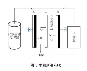 燃料電池與bmed技術的結合,為能源的發展拓展了新方向。在生物制氫方面,jing tang等提出一種集成發酵制氫和產物分離為一體的生物制氫系統,見圖 3。