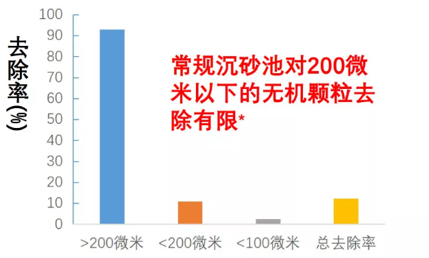 除了上述的問題以外,還有些地區的沉砂池根本攔截不住砂粒,但是生物池內的污泥濃度中mlvss占比卻極低,這主要是因為現階段標準設計的沉砂池都是以去除0.2mm的砂粒為主要去除對象的,如果進水的無機砂粒粒徑小于0.2mm,相對密度低于2.5的,就不能被沉砂池有效的去除,造成生化段活性污泥的無機成分增多。
