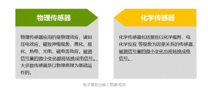 sniffdrone,顧名思義,就是一臺會辨識氣味的無人機。為了幫助讀者了解這個技術的原理,小編找到了知乎上的一篇文章《電子鼻的原理是什么啊,能識別氣味?》給大家參考。如下圖所示,所謂的電子鼻就是各種傳感器,其中又分為了物理傳感器和化學傳感器。