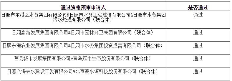 日照市全域水環(huán)境綜合治理ppp項目社會資本方采購項目資格預(yù)審結(jié)果公告